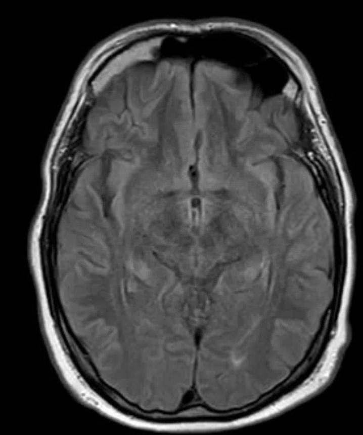Wenige Tage später wird ein Mitte 70-jähriger Mann aus der Unfallchirurgie übernommen. Dort war er nach einem Sturzereignis aufgenommen worden, innerhalb kurzer Zeit war er dort gang- und standunfähig geworden. Klinisch-neurologisch bestehen eine eher diskrete Augenbewegungsstörung, eine ausgeprägte Rumpfataxie, der Patient kann nicht frei sitzen und eine Kurzzeitgedächtnisstörung.